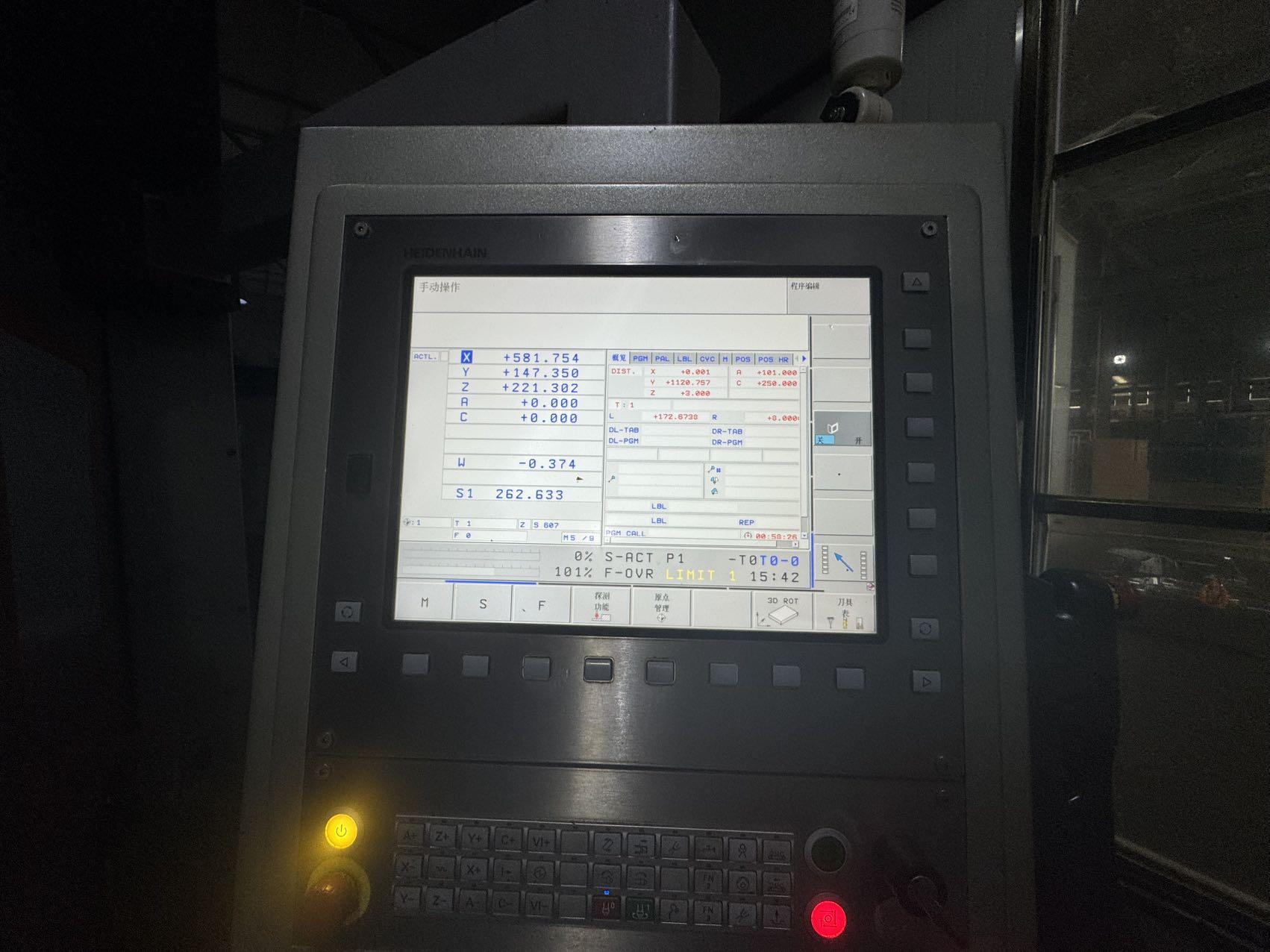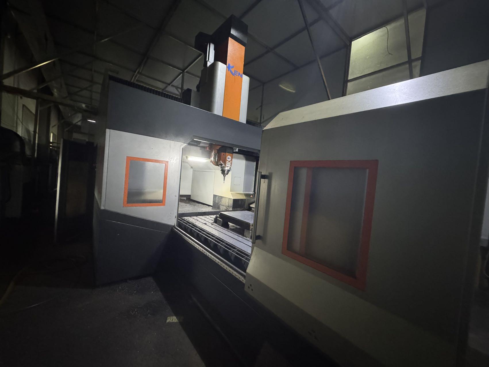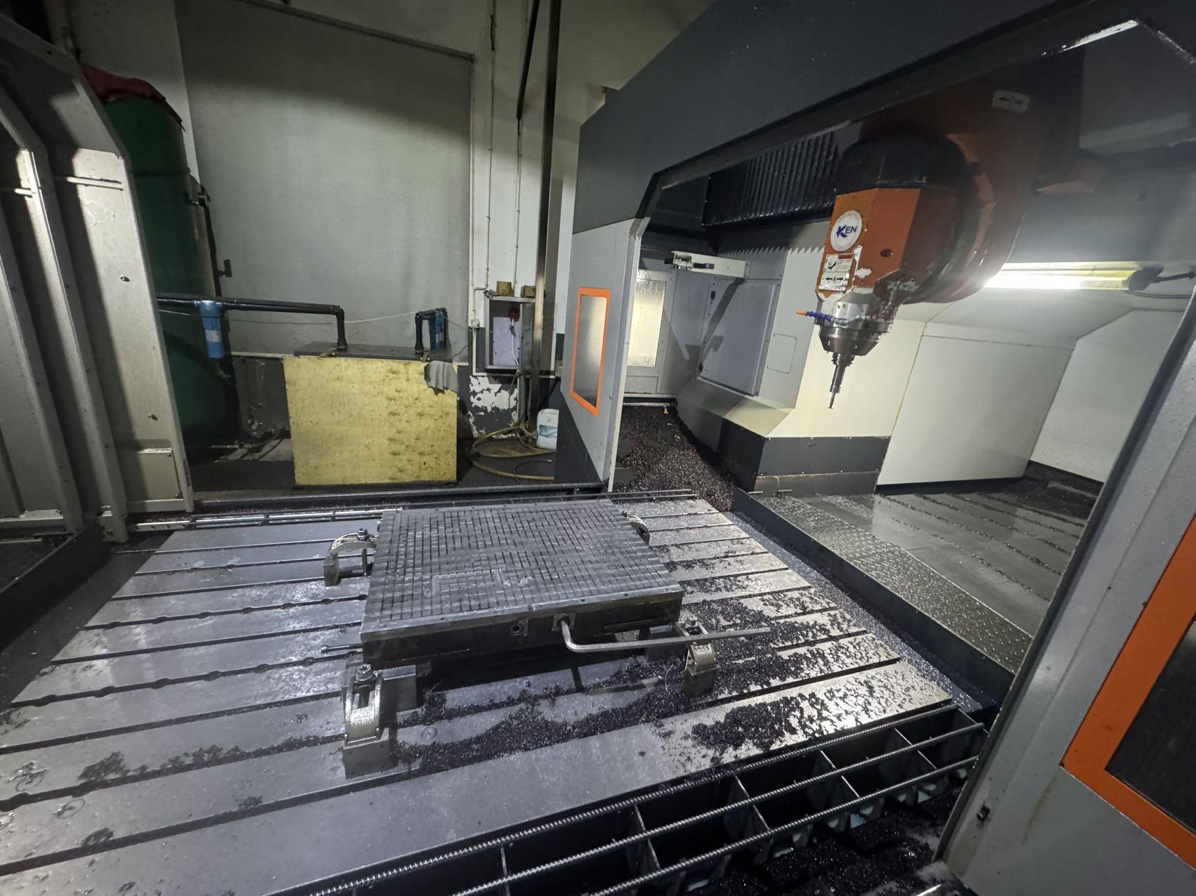 数控系统:海德汉 TNC-640(五轴联动)三轴行程:2200 × 2000 × 1000 mm两立柱间距离:1650 mm主轴鼻端至工作台距离:-150 ~ 850 mm结构形式:高刚性一体式龙门结构工作台尺寸:2200 × 1300 mmT 型槽规格:18 mm(间距 180 mm)最大承重:4000 kg主轴锥度:HSK-A63主轴转速:24000 rpm主轴功率:21 kW(S1)五轴头:欧洲进口 TCH-L13(EVO),力矩电机直驱A 轴行程:±110°C 轴行程:360°连续刀库容量:36 刀柄形式:HSK-A63最大刀具重量:8 kg换刀时间(刀对刀):约 6 秒位置反馈:X / Y / Z 全闭环海德汉光栅尺导轨形式:6 支滚柱线性滑轨(X / Y / Z 各 2 支)排屑方式:螺旋 + 刮板排屑机机床尺寸(长 × 宽 × 高):约 8500 × 4500 × 4200 mm整机重量:约 52 吨