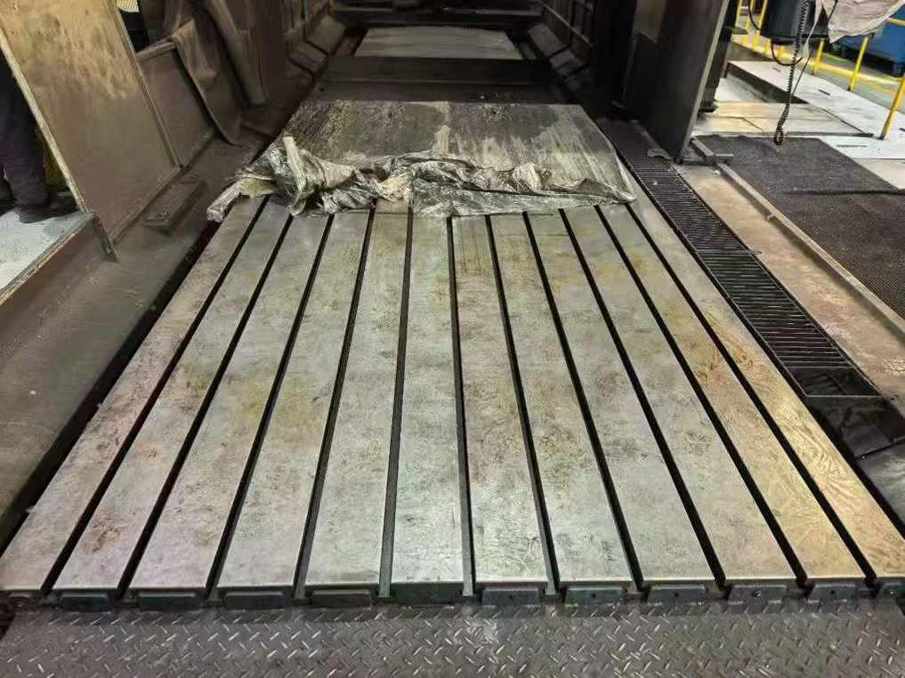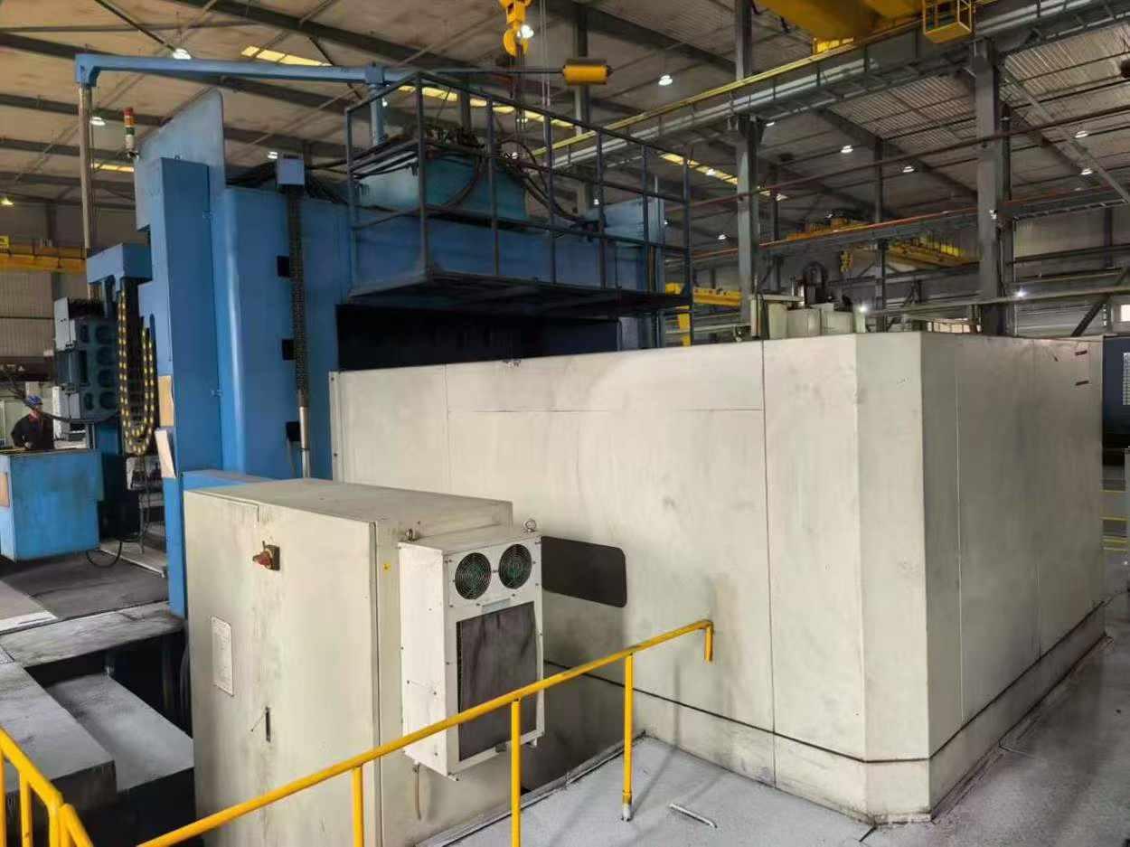 三轴行程:4000x2500x1000mm工作台尺寸:4000x2500mm主轴锥度:BT50主轴转速:6000 rpm主轴功率:18.5/22 kW刀库容量:40T数控系统:发那科 18i-MB机床重量:32 吨