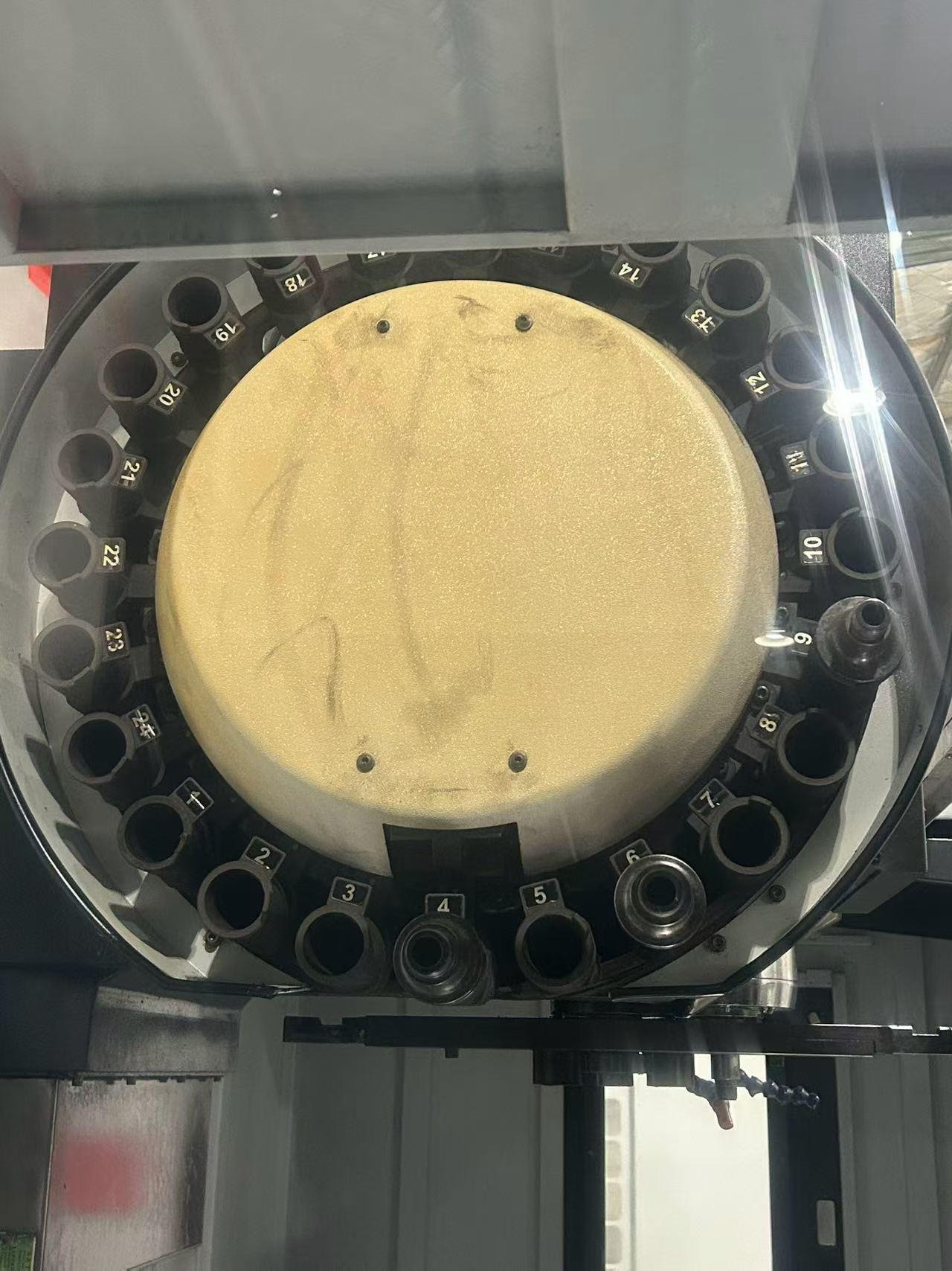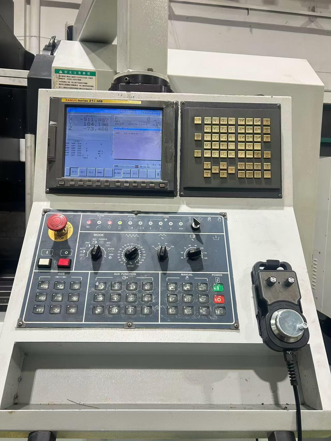 数控系统:发那科 21i-MB三轴行程:1200x600x600 mm工作台尺寸:1300x600 mm主轴转速:15000 rpm主轴电机功率:15kw刀库:24主轴锥度:BT40主轴鼻端至工作台距离:125-725 mm外形尺寸:3400x2200x2320 mm配置:三轴光栅尺卷销器 油冷机三轴硬轨