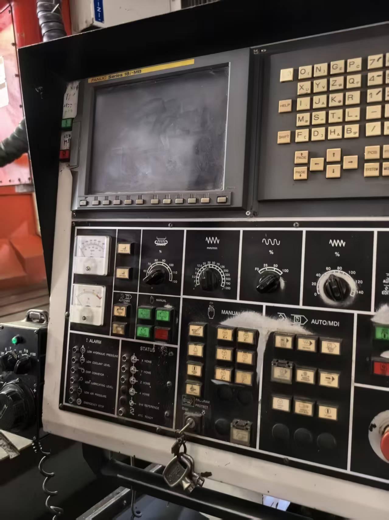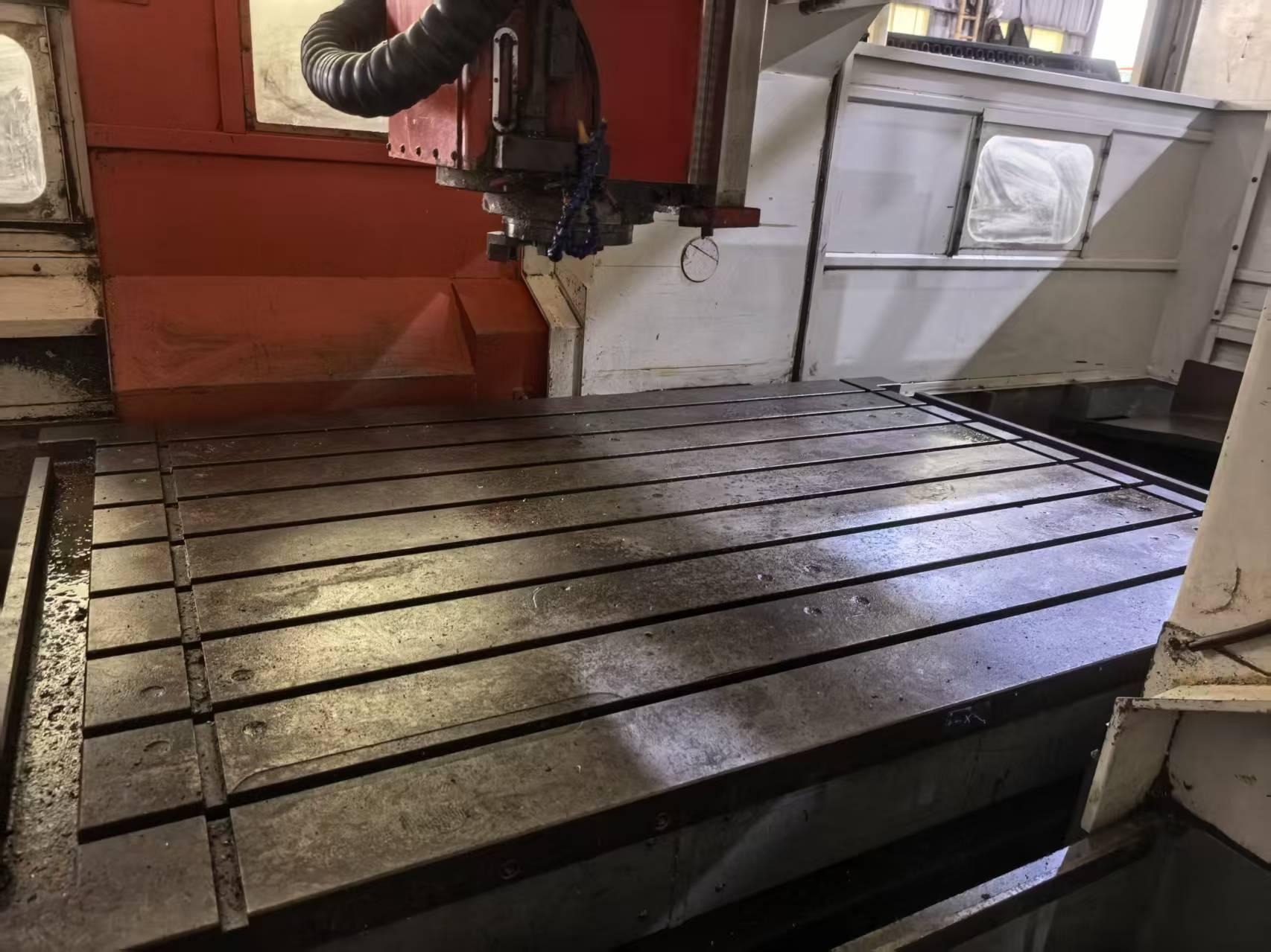 数控系统:发那科 18i-MB(α电机驱动)三轴行程(X/Y/Z):2100 × 1600 × 760 mm工作台尺寸:2300 × 1500 mm刀库容量:32 把主轴规格:BT50主轴转速:6000 rpm龙门宽度:1620 mm龙门高度:1300 mm