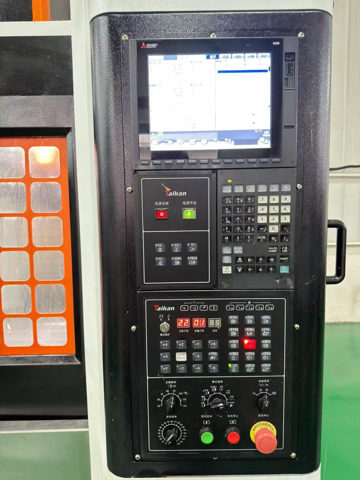 数控系统:三菱M80三轴行程:850x500x530mm主轴锥度:BT40主轴转速:10000rpm工作台尺寸:900x500mm工作台承重:600kg刀库:24把配置:主轴带油冷,机带液压,带一个激光探头。