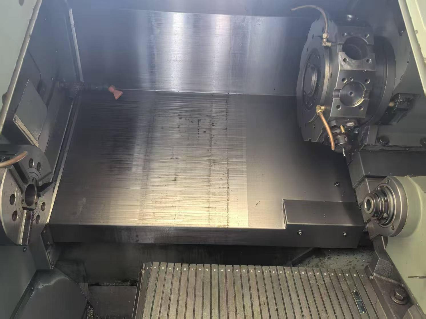 数控系统:发那科18-T最大回转直径:φ200 mm最大加工长度:750 mm主轴通孔直径:φ52 mm主轴转速:4500 rpm主轴电机功率:7.5/11 kWX轴行程:φ200 mmZ轴行程:750 mmY轴行程:±50 mm刀塔形式:12工位动力刀塔卡盘尺寸:8寸整机重量:6500 kg外形尺寸:3500x1800x1900 mm