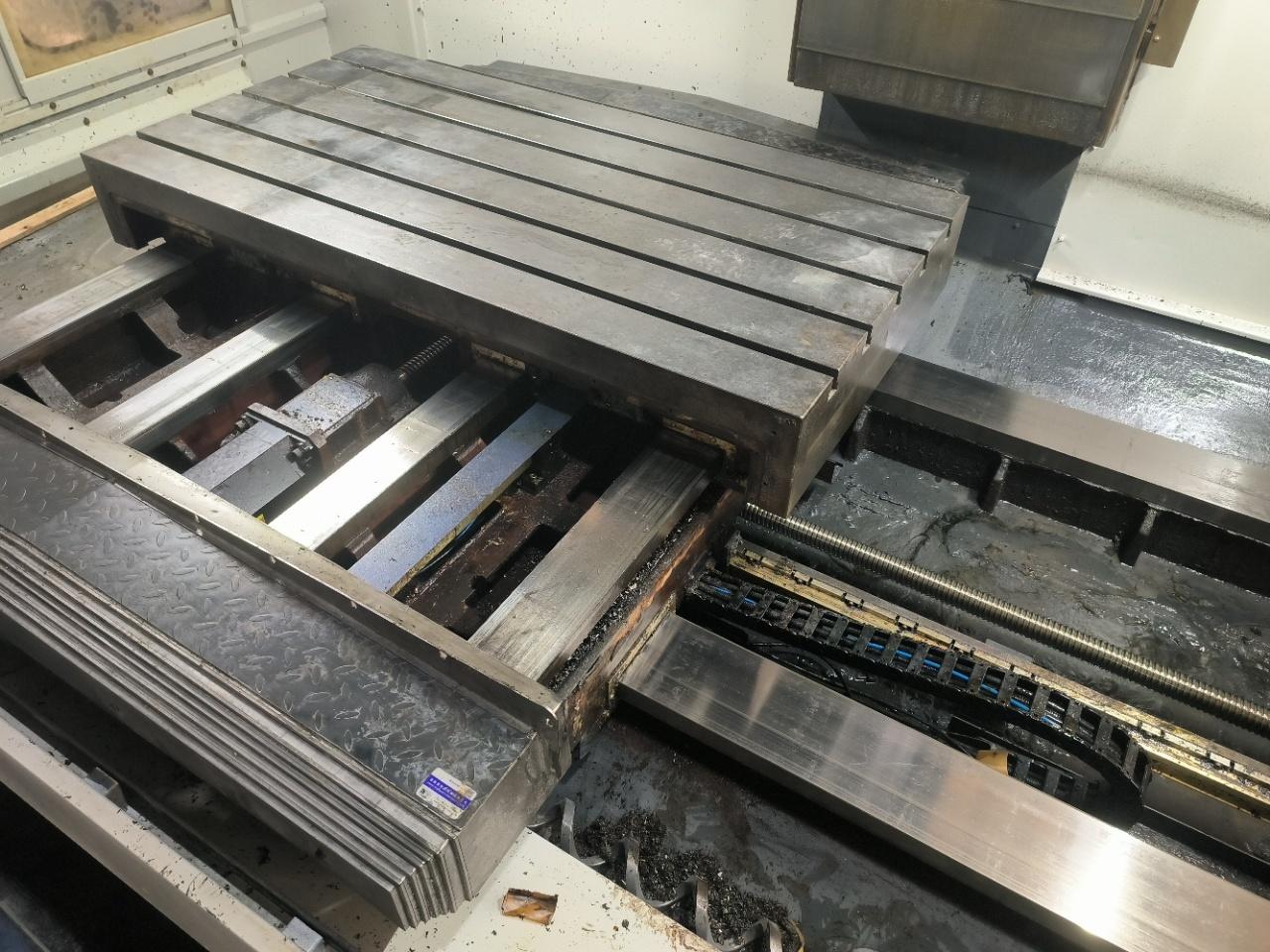 数控系统:发那科 MXP-200i三轴行程(X/Y/Z):1500 × 850 × 800 mm工作台尺寸:1700 × 860 mm导轨形式:三轴硬轨主轴锥度:BT50主轴转速:6000 rpm刀库容量:24,圆盘式主轴端面至工作台距离:900 mm配置:龙头式排屑机光栅尺中心出水