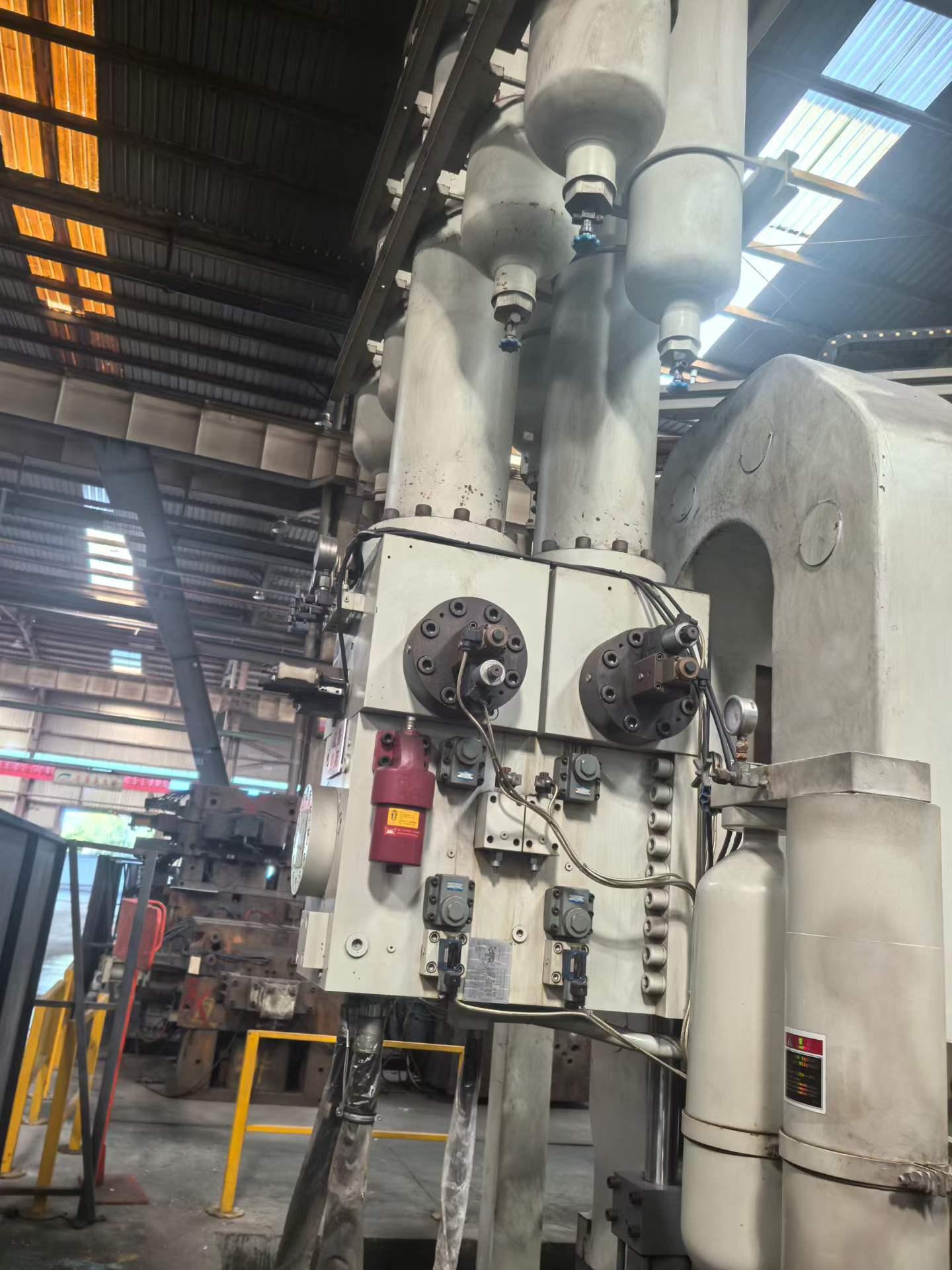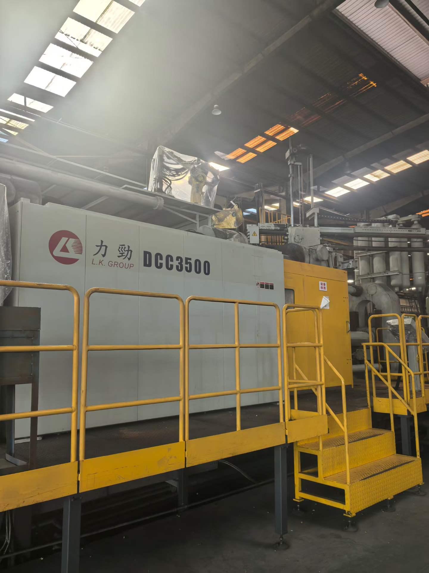 最大锁模力:35,000 kN注射力:约390–420 kN柱塞直径:Ø130 mm柱塞行程:950 mm压铸重量(铝):6.5–8.5 kg投影面积(400 bar):8,750–9,000 cm²模板尺寸(高 × 宽):3100 × 3100 mm拉杆间距(高 × 宽):1950 × 1950 mm模具高度(最小/最大):900/1350 mm开模行程:1200 mm