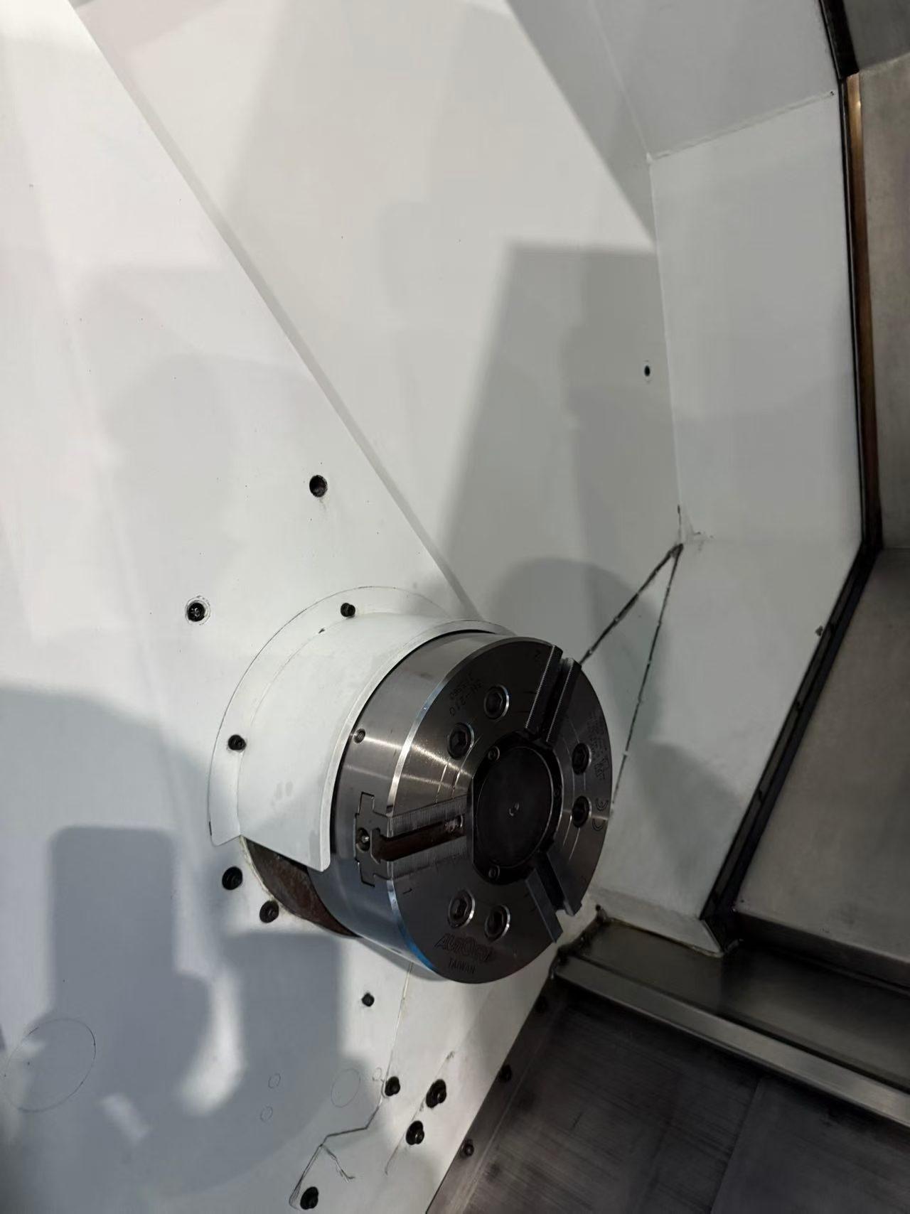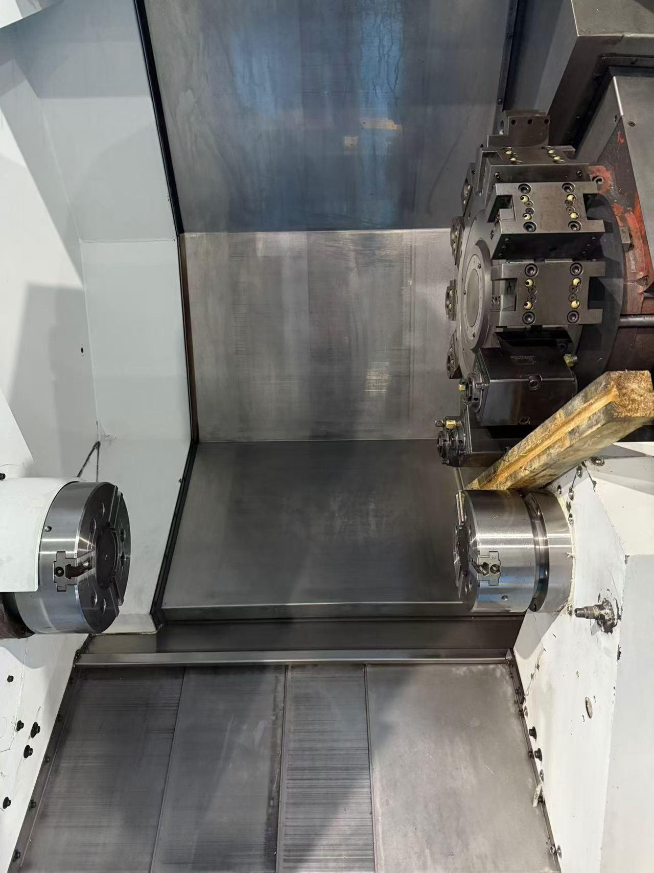 数控系统:发那科0i-TF Plus三轴行程:555 * 200 * 760 mm最大旋转直径:760mm最大车铣直径:440mm最大车铣长度:720mm快移速度:24m/min试机精度:0.01mm正主轴参数:卡盘规格:10 英寸卡盘传动方式:皮带传动主轴电机功率:18.5 kW最高主轴转速:4500 rpm主轴通孔直径:76 mm副主轴参数:卡盘规格:8 英寸卡盘传动方式:皮带传动主轴电机功率:11 kW最高主轴转速:4500 rpm主轴通孔直径:52 mm副主轴B轴前移行程:750mm