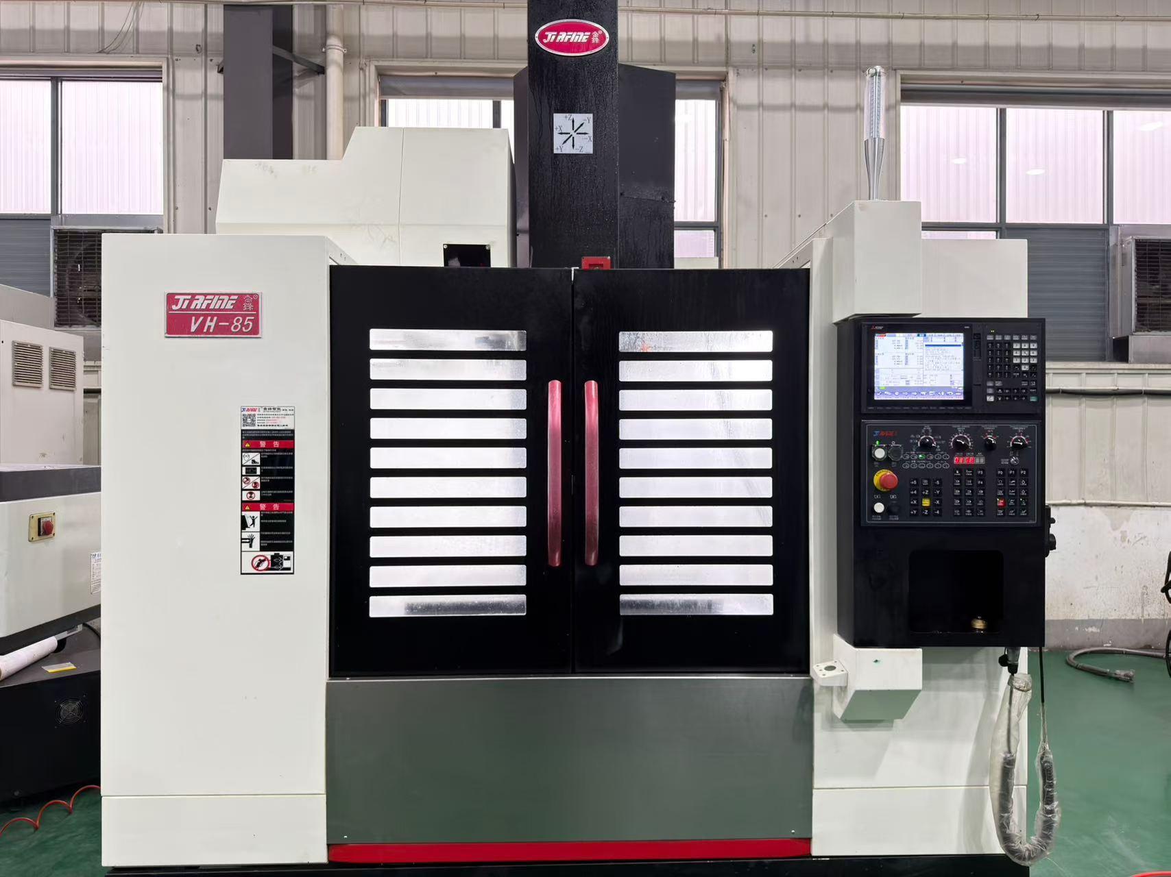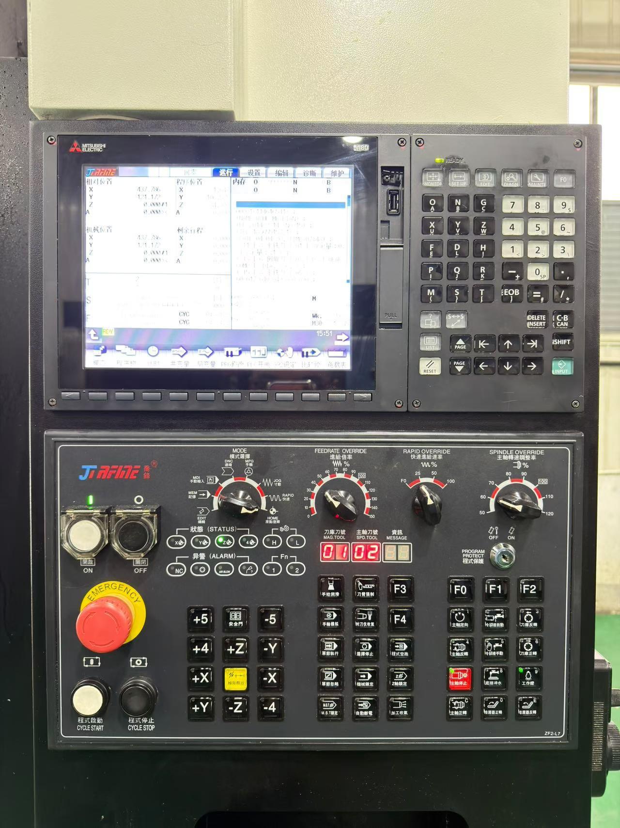 数控系统:三菱 M80三轴行程(X/Y/Z):850 × 550 × 550 mm工作台尺寸:1000 × 520 mm主轴转速:10000 rpm主轴功率:11/15 kW主轴锥度:BT40刀库容量:24