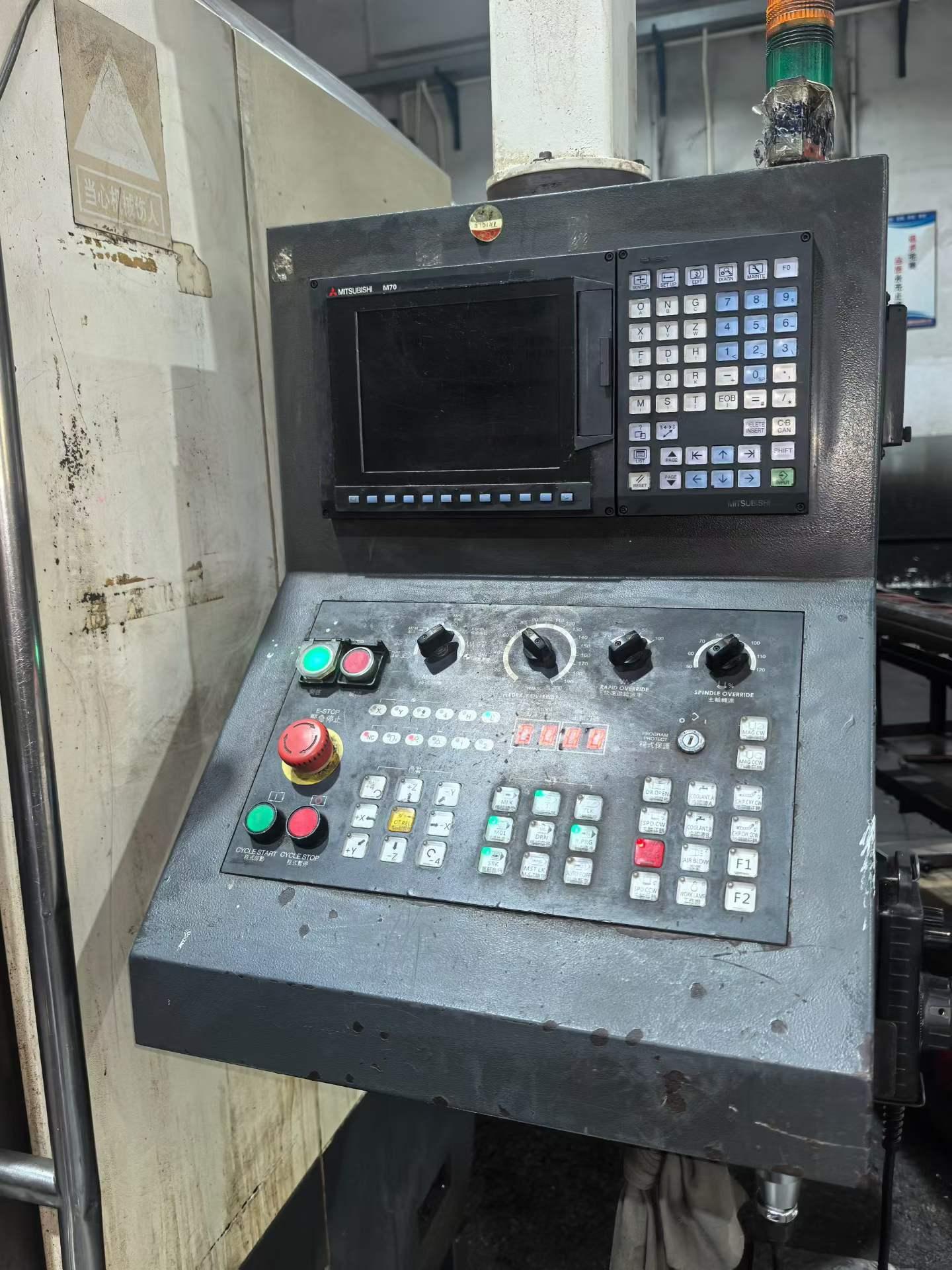 数控系统:三菱M70三轴行程:1300x700x620mm工作台尺寸:1410x660mm工作台承重:1200 kg 主轴中心至立柱导轨面距离:705 mm主轴锥度:BT-50 主轴转速:6000 rpm 主电机功率:15 kW Z轴伺服电机功率:3.0 kW 三轴硬轨