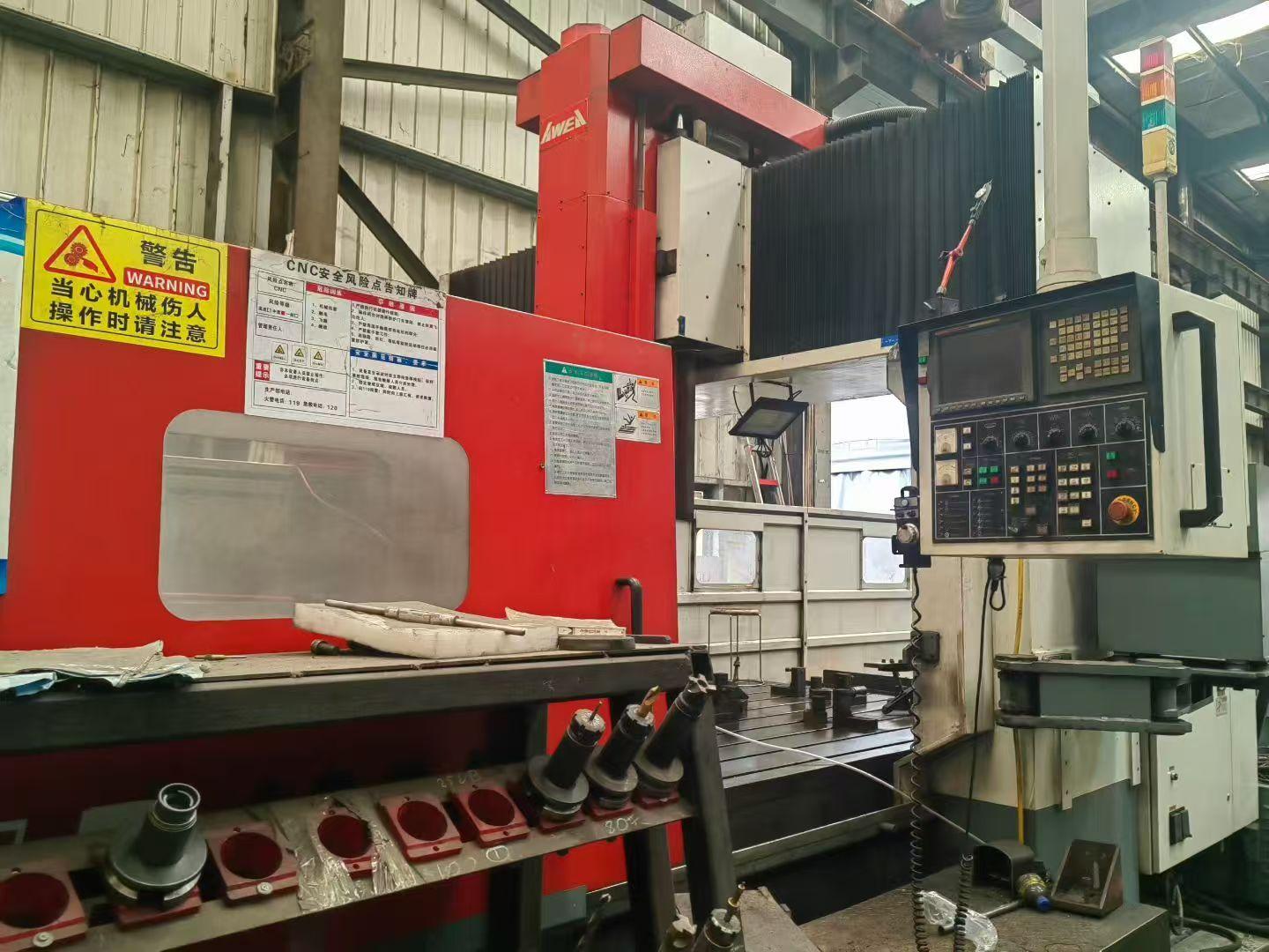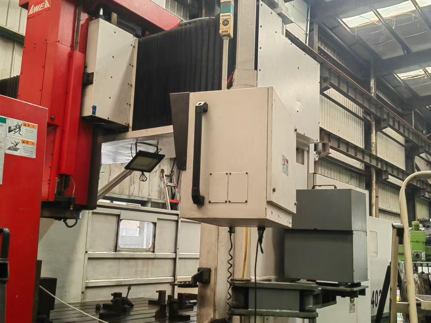 三轴行程:4000 × 2100 × 760 mmX / Y / Z轴快移速度:15 × 15 × 15 m/min工作台尺寸:4020 × 2010 mm工作台最大承重:12000 kg主轴最高转速:6000 rpm主轴锥度:BT50龙门宽度:2700 mm龙门高度:1400 mm刀库容量:32机器重量:37500 kg