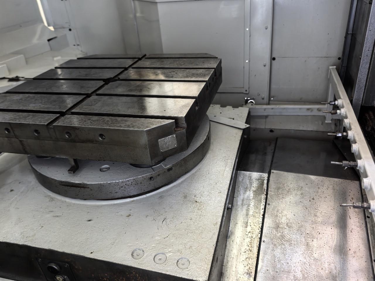三轴行程:1000x800x810mm工作台:630x630mm工作台承重:1200kg工作台分度:1°x1°主轴转速:5000rpm主轴:BT50 刀库:40把数控系统:大隈OSP-P200双交换工作台