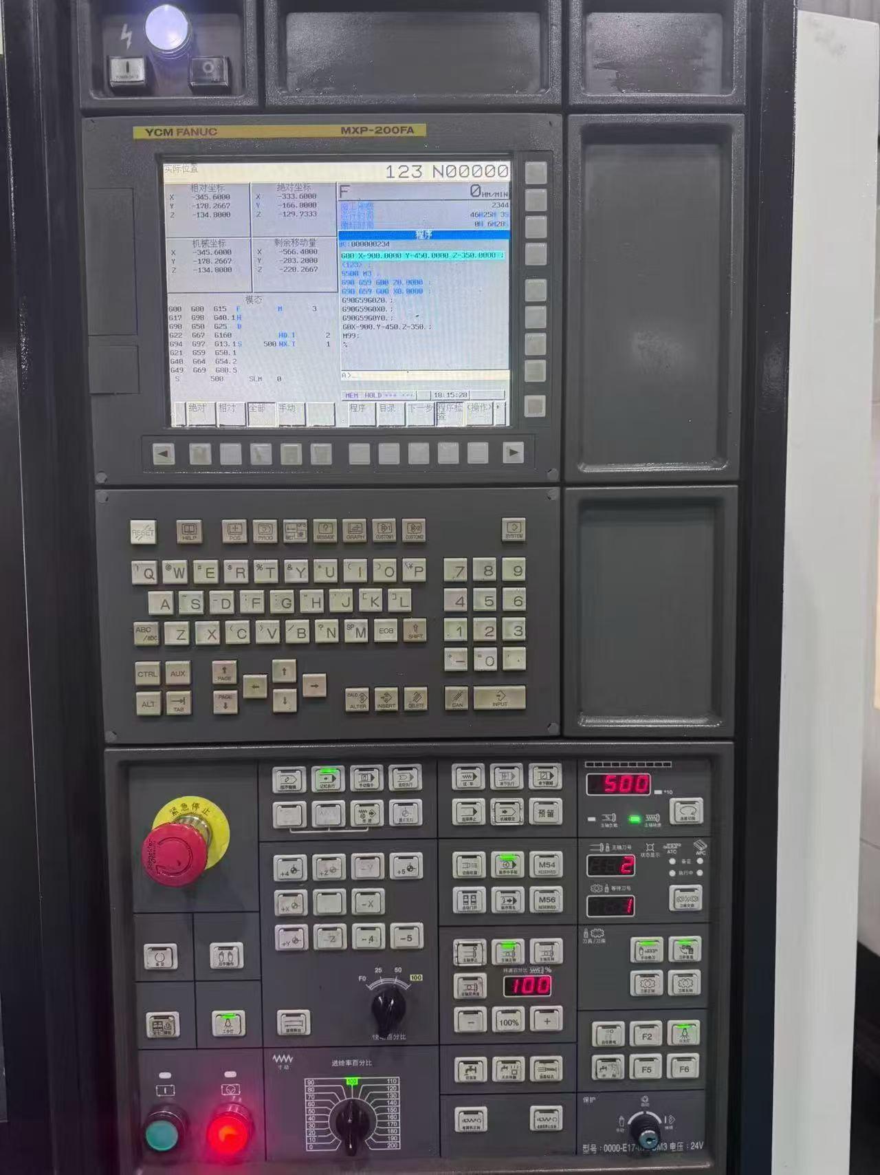 数控系统:发那科 MXP-200FA三轴行程:1020 × 520 × 540 mm工作台尺寸:1120 × 520 mm主轴最高转速:12,000 rpm主轴电机功率:18.5 kW主轴锥度:BT40主轴鼻端至工作台距离:140–680 mmX/Y/Z轴快速进给速度:24 / 24 / 16 m/min刀库容量:24,刀臂式