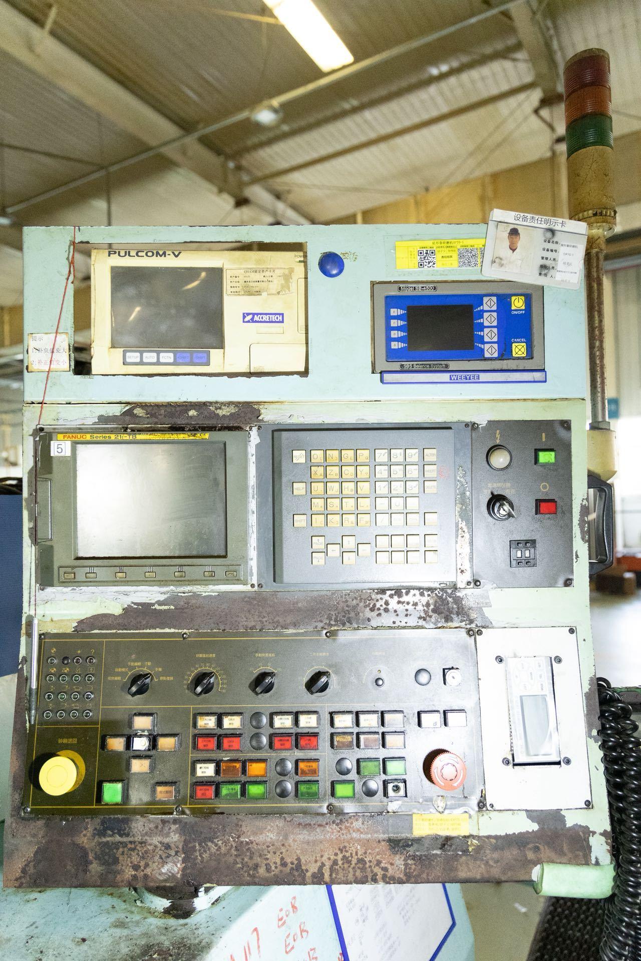 数控系统:发那科 21i-TBX轴行程:210 mmZ轴行程:500 mm头尾架顶尖中心距:500 mm最大可磨削工件外径:φ180 mm最大磨削长度:400 mm砂轮主轴最高转速:2400 r/min主轴电机:15 HP(11 kW)辅助电机:2.0 HP整机总功率:35 HP主电路电压:380 V(三相,50 Hz)控制电压:DC 24 V配置:东京精密 ACCRETECH PULCOM-V 外径在线测量仪WEEYEE SS-4500 砂轮在线动平衡系统台达DELTA VFD-B 重载专用变频器BUNRI高精度液压站油冷恒温机纸带过滤机磨床专用油雾净化机组0.2T工件悬臂吊