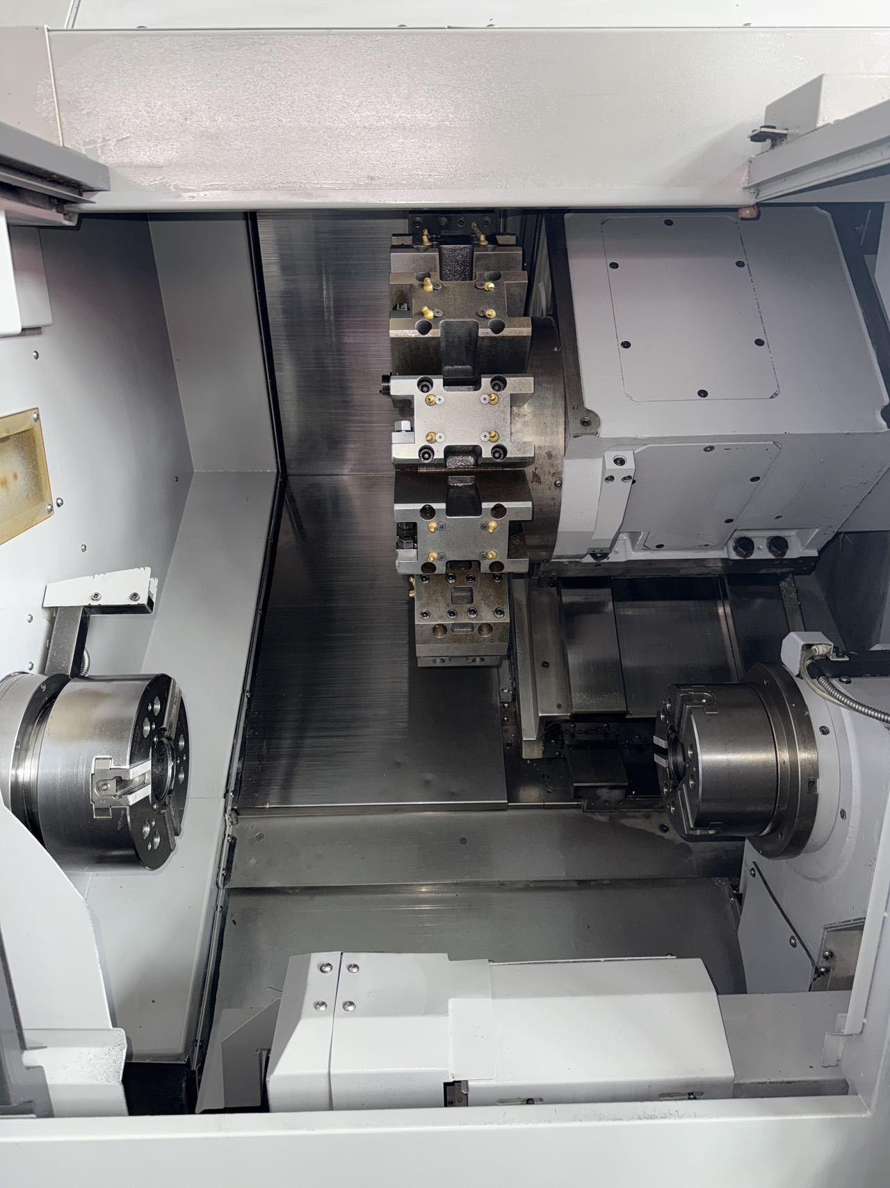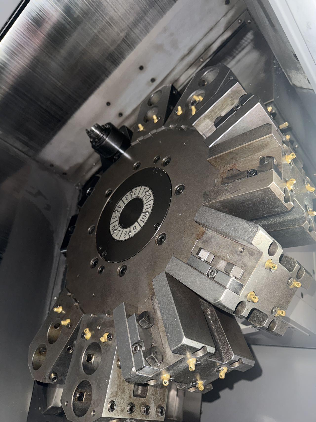 数控系统:发那科 Oi-TF Plus X / Z / A / Y 轴行程:221 × 400 × 506 × ±50 mm X / Z / A / Y 轴快移速度:24 × 27 × 30 × 12 m/min 主轴通孔直径:65 mm 主轴电机功率:7.5 / 11 kW 主轴转速:4500 rpm 副主轴通孔直径:59 mm 副主轴电机功率:5.5 / 7.5 kW 副主轴转速:4500 rpm 刀塔:12工位伺服刀塔 刀塔工位数:12 刀塔转速:5000 rpm 外径刀具刀柄:25 mm 最大加工直径:280 mm 最大加工长度:380 mm